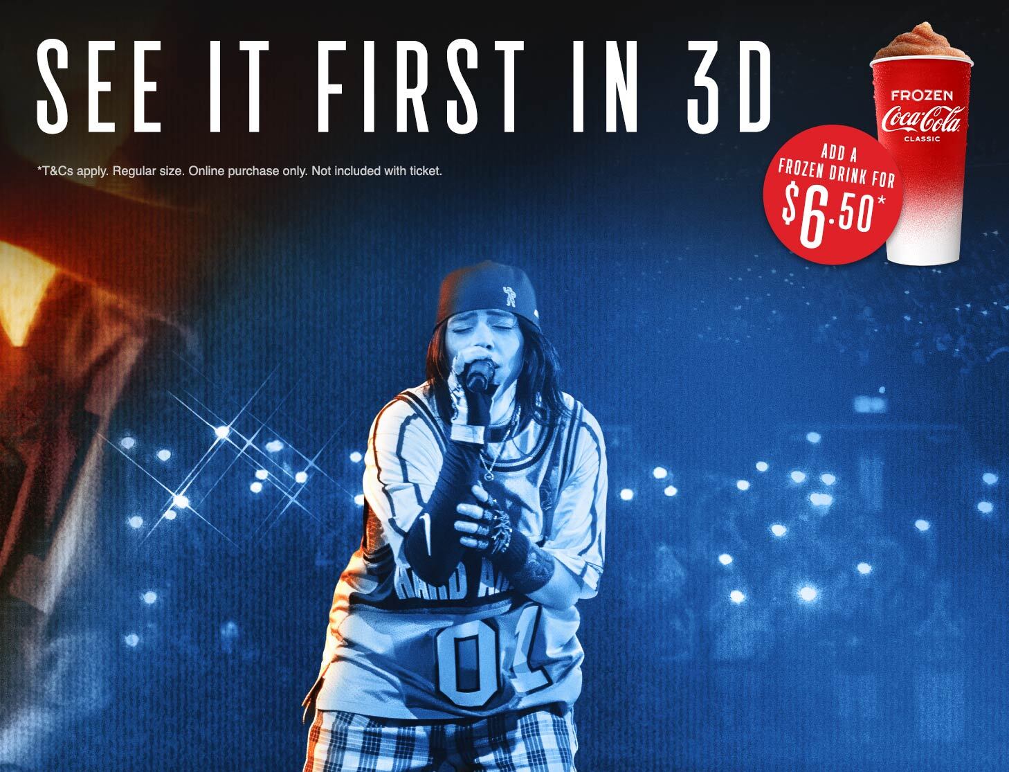 Have a happier than ever 3D film experience by adding a refreshing Regular Frozen Drink to your online booking for just $6.50*. Terms and conditions apply.