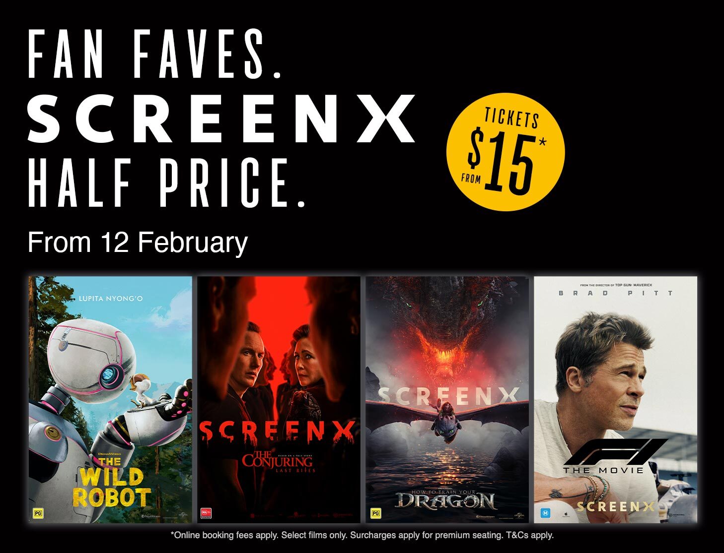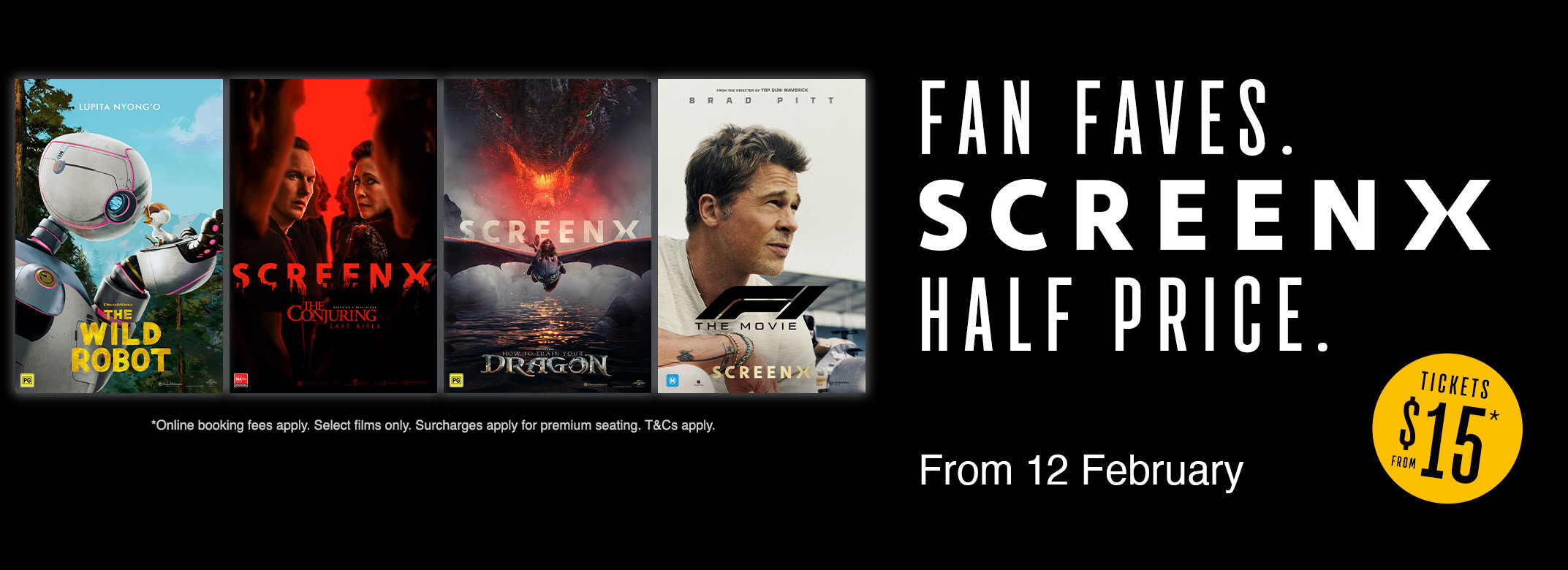 Catch your favourite films back on the big screen in SCREENX, the revolutionary 270-degree cinema experience, from just $15*.