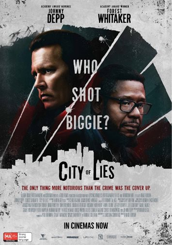 Based on the true story of one of the most notorious and unsolved cases in recent memory, CITY OF LIES is a provocative thriller revealing a never-before-seen look at the infamous murder of The Notorious B.I.G. shortly following the death of Tupac Shakur. L.A.P.D. detective Russell Poole (Johnny Depp) has spent years trying to solve his biggest case, but after two decades, the investigation remains open. "Jack" Jackson (Forest Whitaker), a reporter desperate to save his reputation and career, is determined to find out why. In search of the truth, the two team up and unravel a growing web of institutional corruption and lies. Relentless in their hunt, these two determined men threaten to uncover the conspiracy and crack the foundation of the L.A.P.D. and an entire city. Based on the nonfiction book LAbyrinth, written by Randall Sullivan.