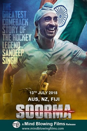 Soorma is based on the true story of the life & times of Indian hockey player Sandeep Singh. It's a 2018 Indian biographical film about the triumph of the human spirit. It recounts Singh's near death experience in which he was accidentally shot & left physically paralysed enroute to Germany for 2006 Hockey World Cup during the peak of his sporting career. However, his unrelenting passion and sheer determination lead to an incredible recovery & comeback, Singh's tale is the stuff of legends.