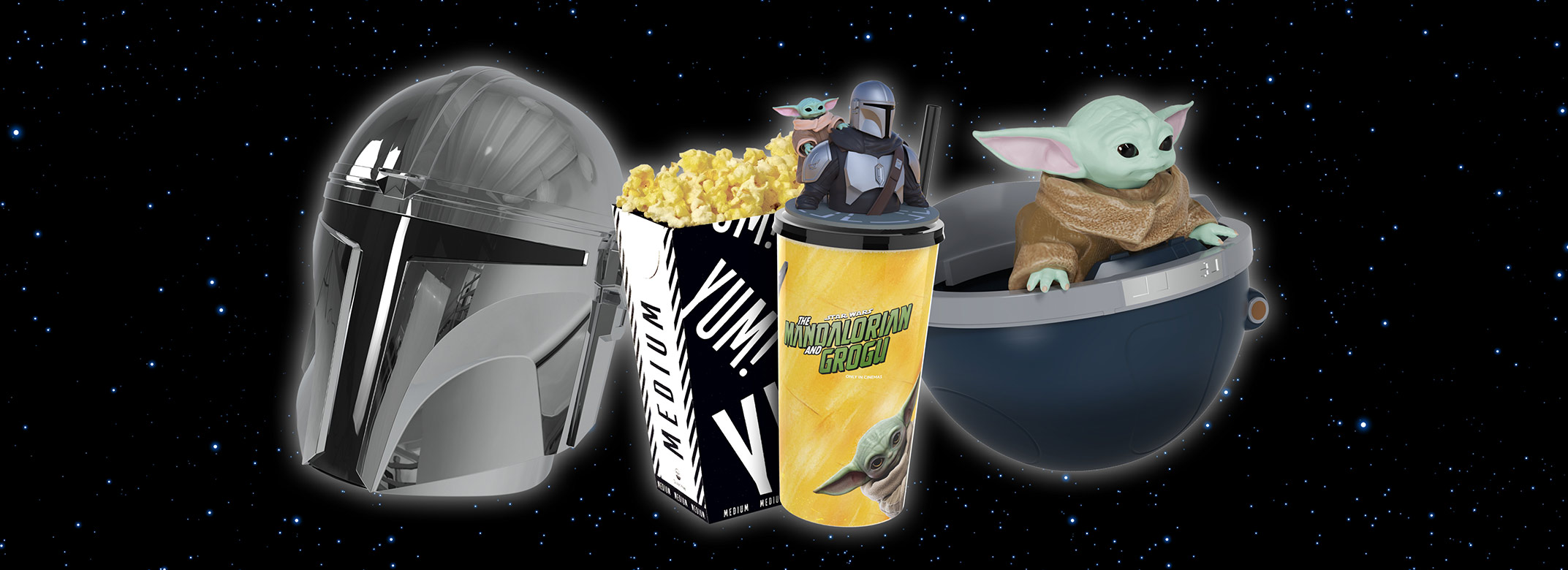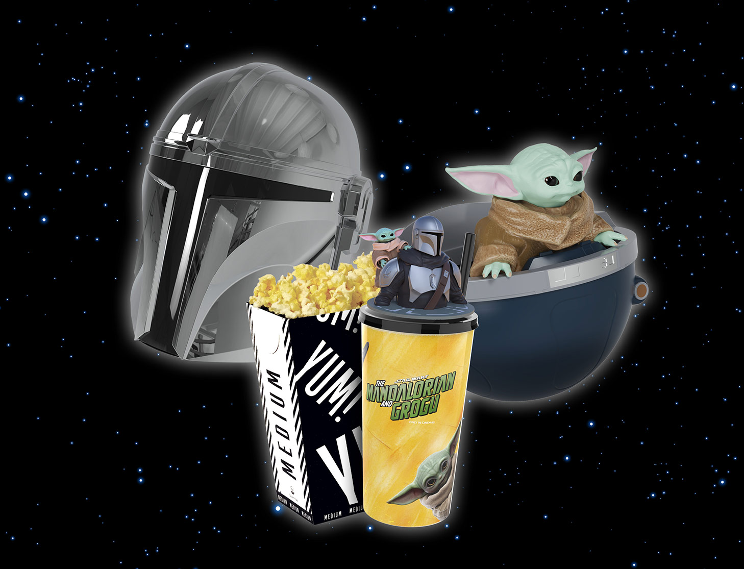 *Online booking fee applies. Collectibles do not include a ticket. Strictly while stocks last. Available at select locations only from Thursday 21 May. Grogu Popcorn Pod and Mandalorian Popcorn Helmet will be available to purchase in cinema only from 21 May.